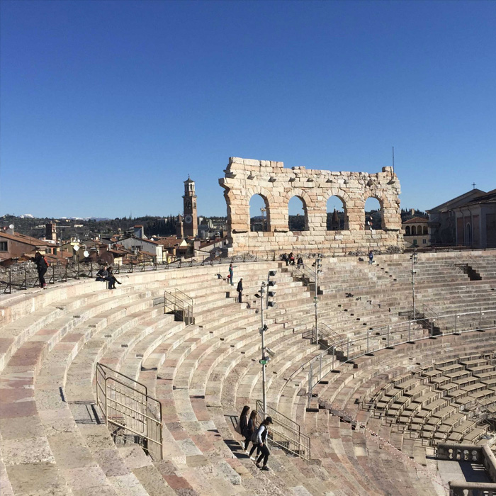 Römisches Amphitheater im historischen Zentrum von Verona, Wahrzeichen der Stadt Venetien zusammen mit den Figuren von Romeo und Julia.
