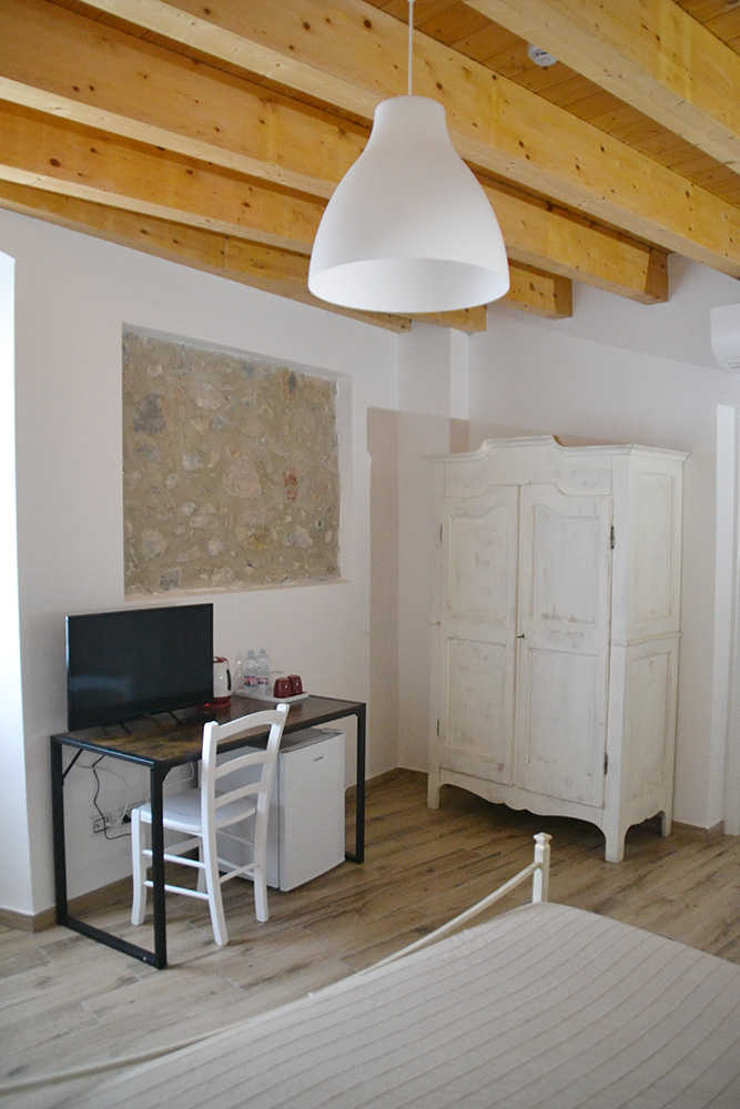 Zimmer mit Doppelbett (17,90 m²) und eigenem Bad (6,20 m²) im ersten Stock.