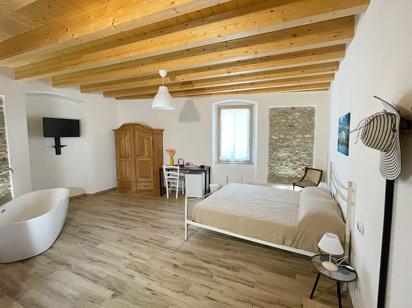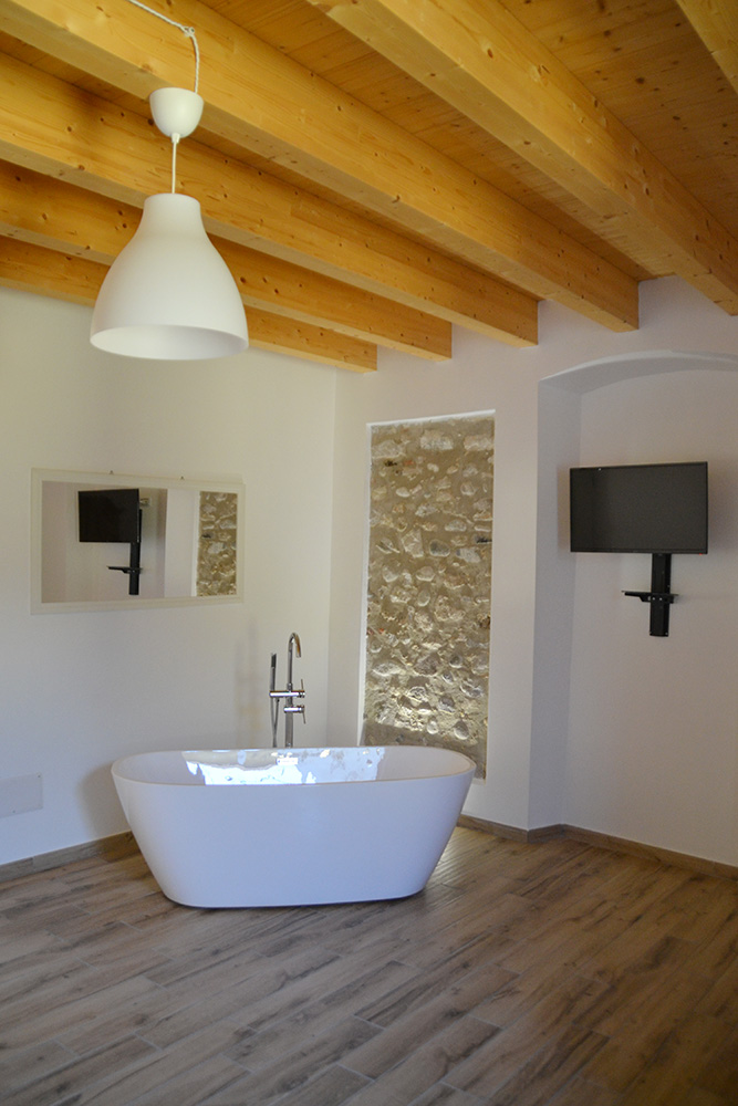 Zimmer mit Doppelbett von 24 m2 und eigenem Bad von 7 m2, im ersten Stock gelegen.